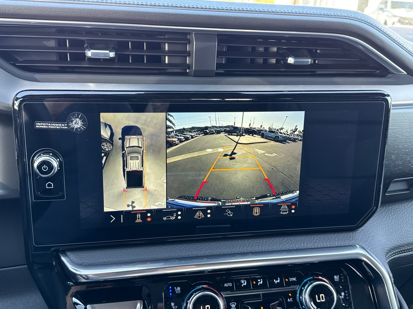 - Allows driver to see inside the cargo bed on the infotainment display to help with 5th wheel or gooseneck hitching and to check cargo